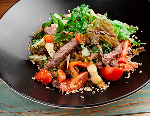 Салат теплый со свининой