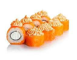 Тигровые креветки, крем-краб, творожный сыр, свежий огурчик, соус яки.