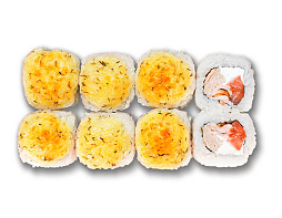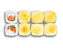 Крем-краб, лосось, авокадо, масага, сырная шапочка.