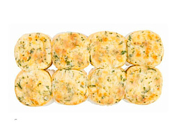 Тигровая креветка, творожный сыр, зеленый лук, сырно-чесночная шапочка.