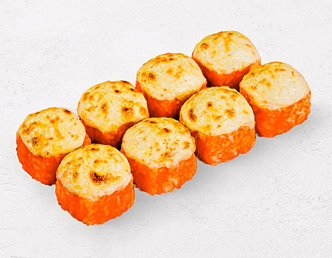 Крем-краб, лосось, авокадо, масага, сырная шапочка.
