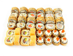 Филадельфия лайт, филадельфия с луком, запеченная калифорния, лава с креветкой, цыпа под сыром, темпура сан, темпура с семгой (56 шт.)