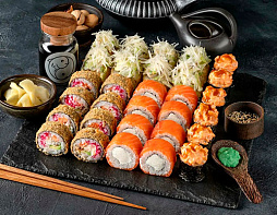 Филадельфия классика, мацахиро, лава с лососем, лава с креветкой, сырная курочка (40 шт.)