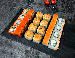 Калифорния с крабом, филадельфия лайт, запеченный с лососем. (24 шт.)
